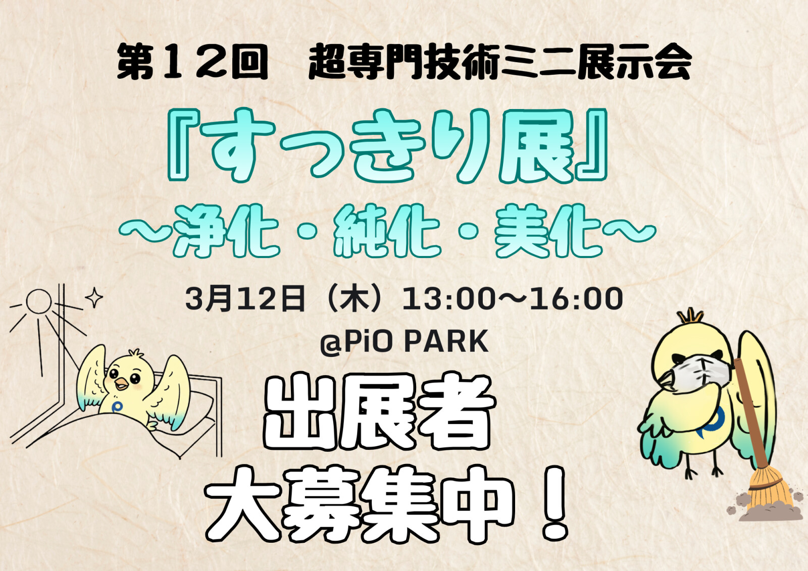 第12回超専門技術ミニ展示会「すっきり展」をPiO PARKで開催します。